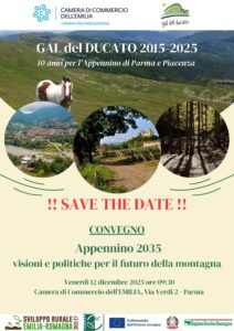 Per celebrare i 10 anni di attività per l’Appennino di Parma e Piacenza, Gal del Ducato in collaborazione con la Camera di Commercio dell’Emilia, organizza il 12 dicembre prossimo venturo il Convegno “Appennino 2035 – visioni e politiche per il futuro della montagna”. Un interessante appuntamento in cui, partendo dalle recenti analisi dell’Osservatorio dell’Appennino dell’Emilia promosso dalla Camera di Commercio dell’Emilia e insieme ai rappresentanti delle istituzioni pubbliche e delle associazioni imprenditoriali e creditizie di Parma e Piacenza, proveremo ad immaginare la nostra montagna nei prossimi anni.