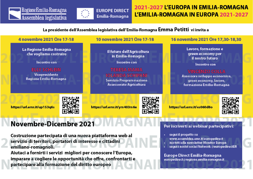 Ciclo di incontri online “L’Emilia-Romagna in Europa – L’Europa in Emilia-Romagna”