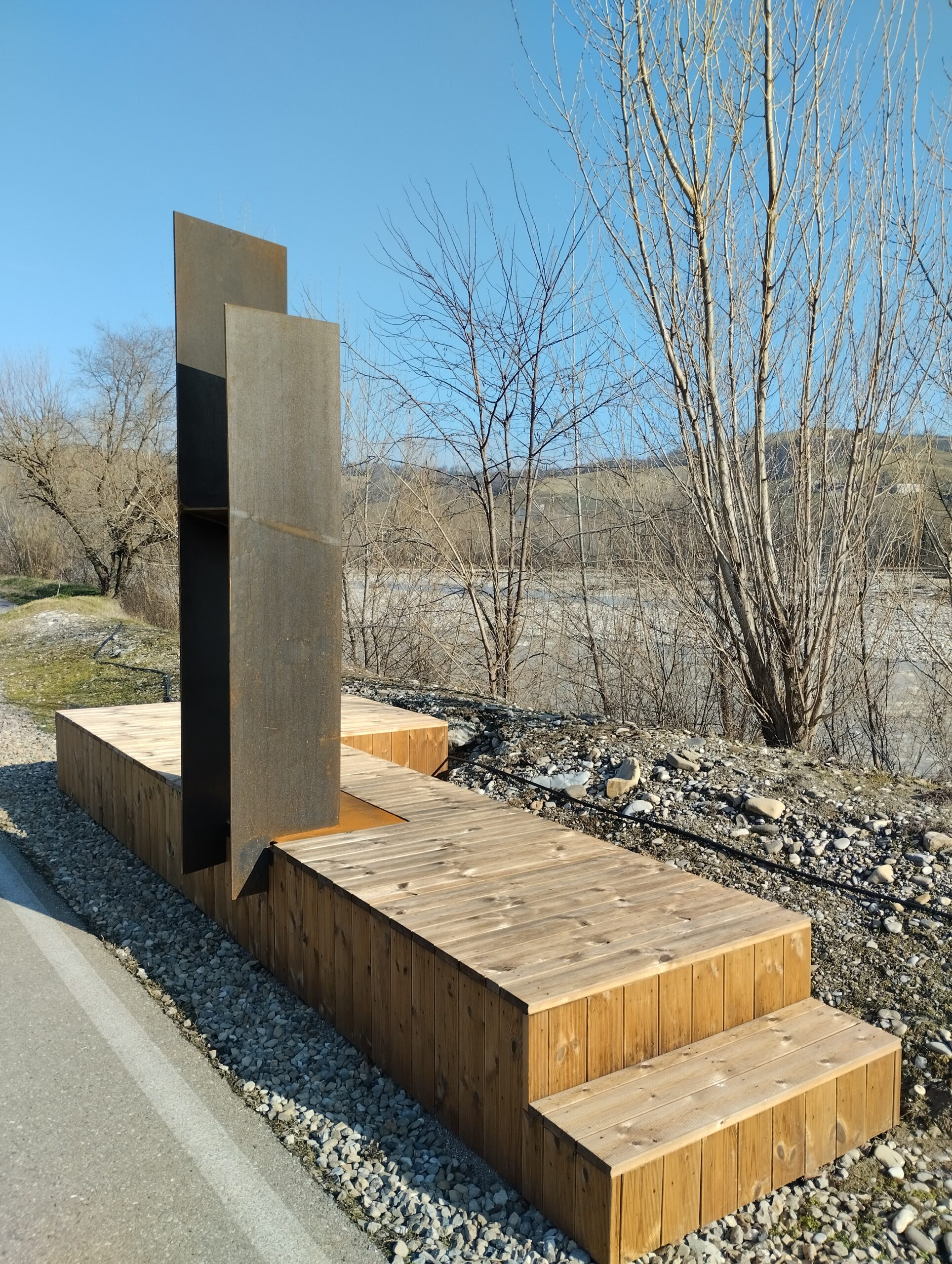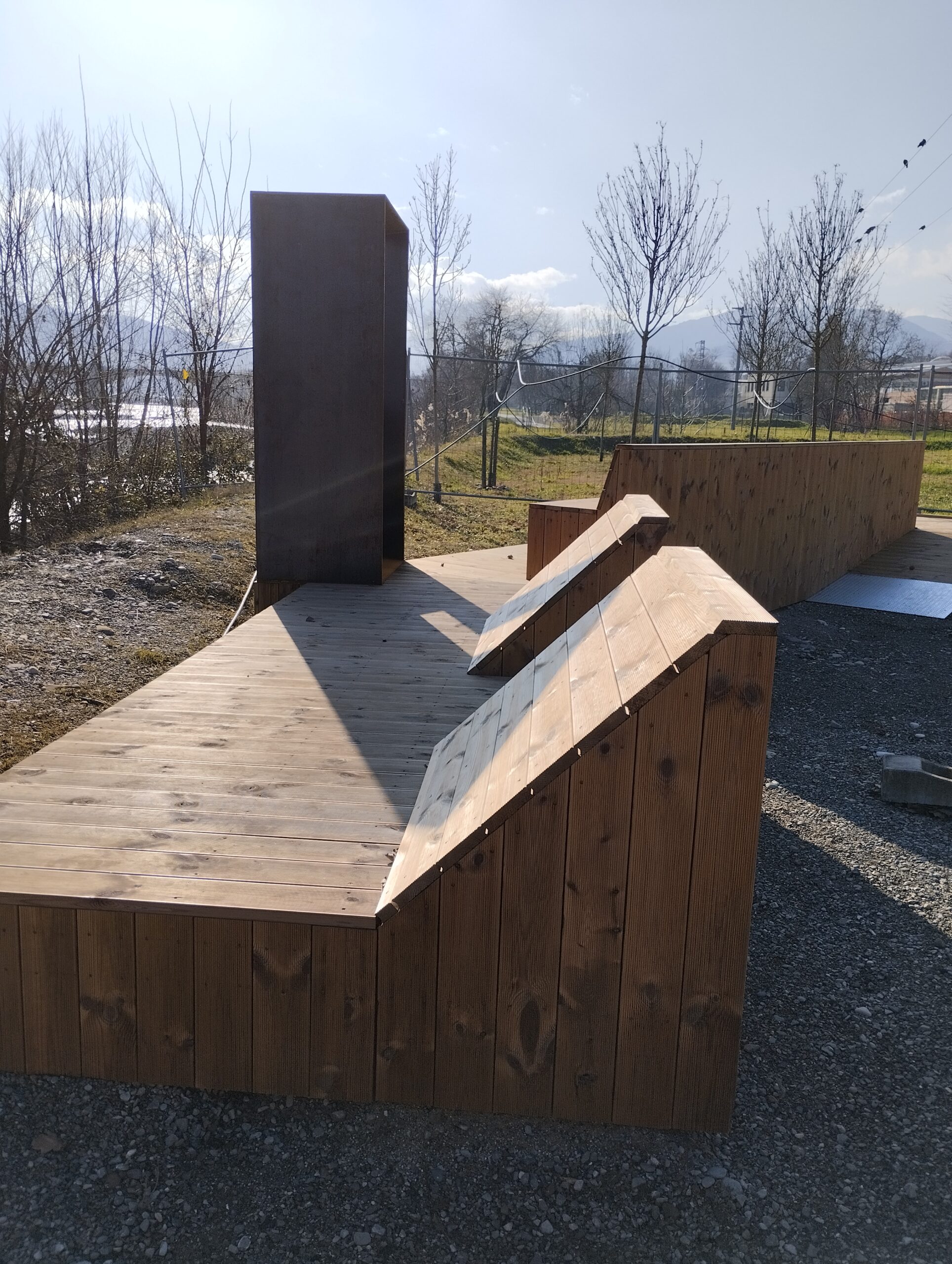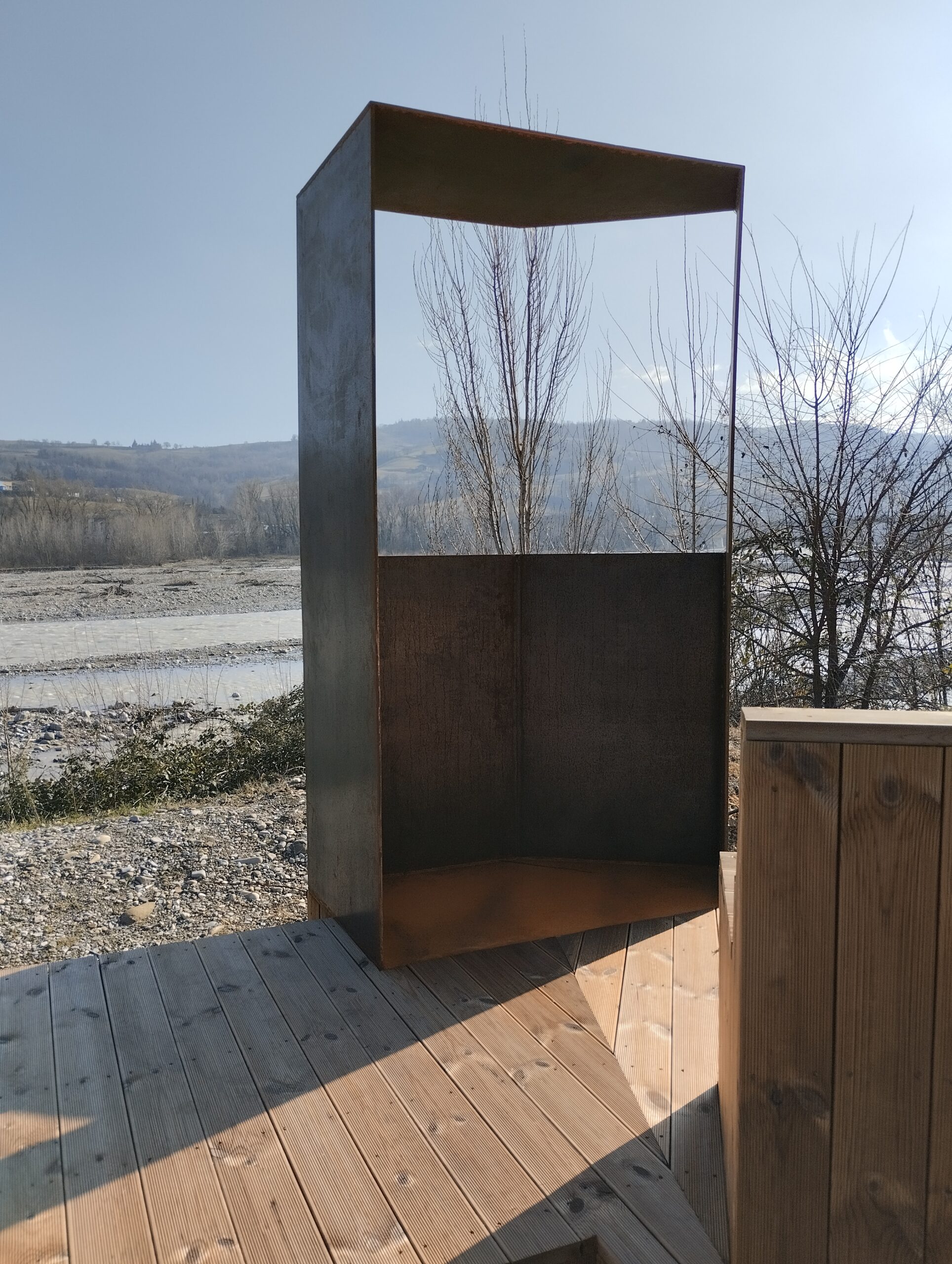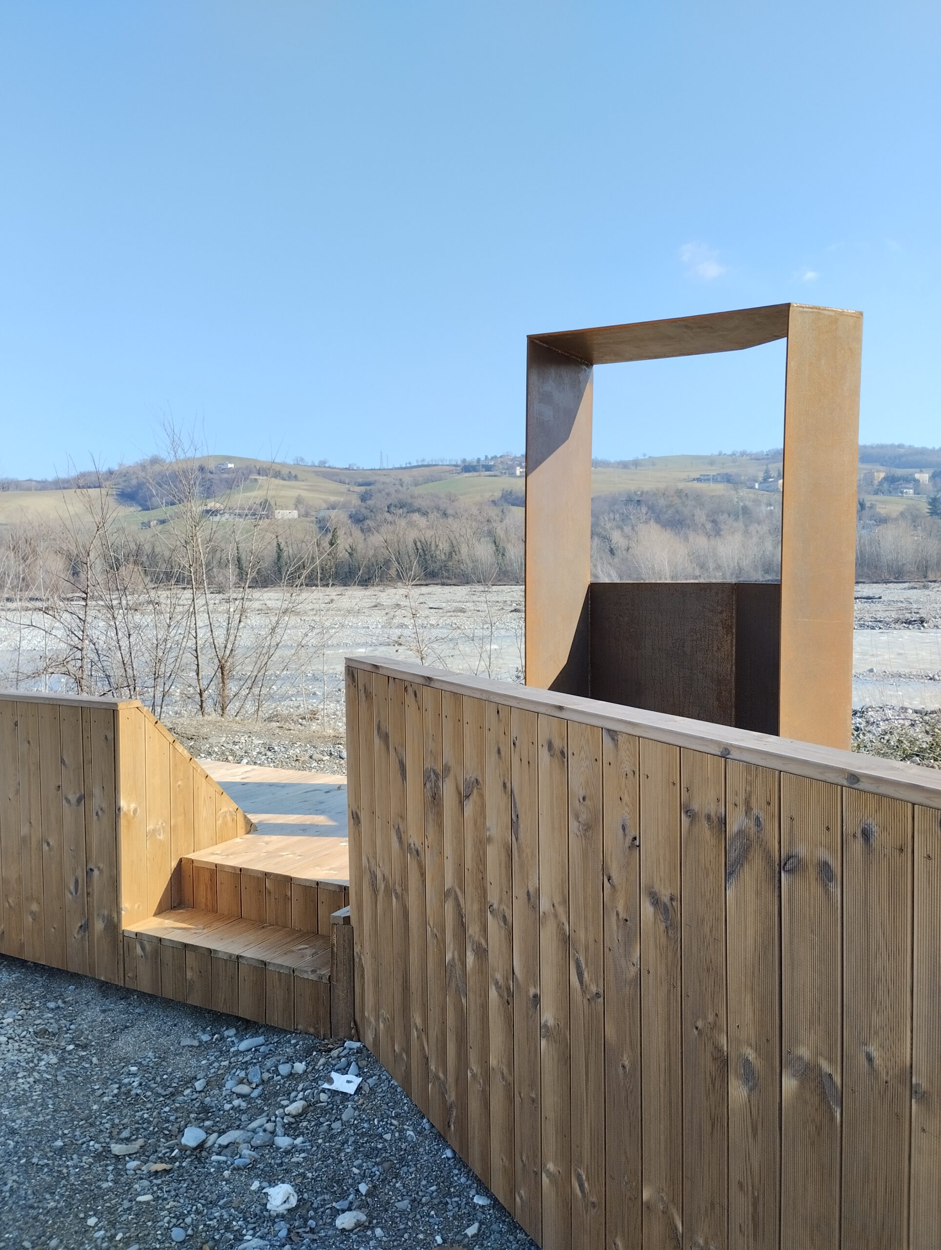 Il progetto, realizzato come progetto pilota nell’ambito del progetto di cooperazione “Paesaggi da Vivere”, ha interessato la riqualificazione di un’area pubblica, in  Via Allende nei pressi della pista ciclopedonale lungo il torrente Parma a Langhirano, con la realizzazione di un “balcone o cornice” nel quale chiunque può fermarsi ed avere un punto di osservazione sul paesaggio particolarmente interessante.