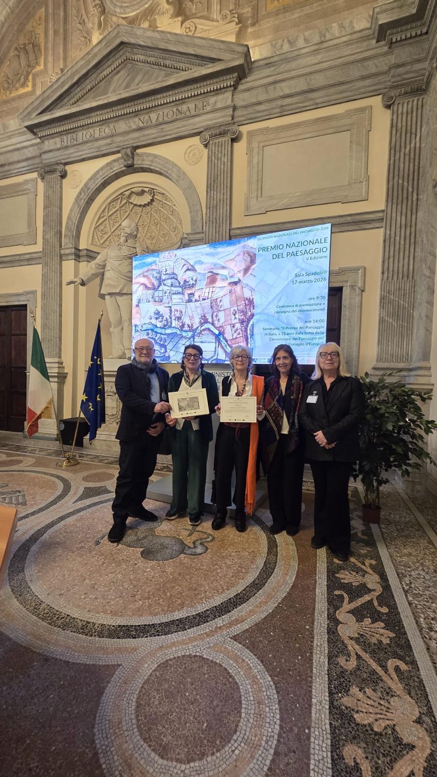 Martedì 17 marzo 2026, presso il Ministero della Cultura (MiC) a Roma si è tenuta la Cerimonia di premiazione del “Premio Nazionale del Paesaggio” iniziativa promossa dal MiC e dal Consiglio d’Europa per evidenziare i progetti che tutelano, gestiscono e valorizzano il nostro paesaggio come bene comune.